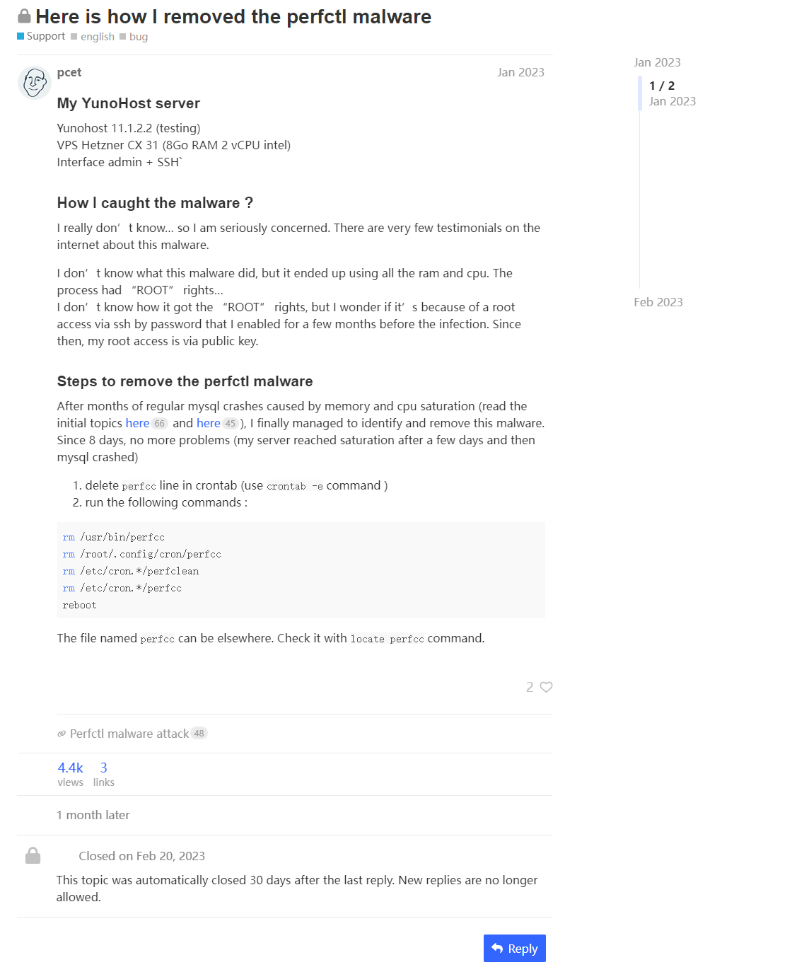 Uploaded and restarted, no perfctl reappearance so far. As for something like file_uploads, you definitely can’t disable it, but for the sake of troubleshooting, if I confirm the problem is solved, I’ll just gradually release it.