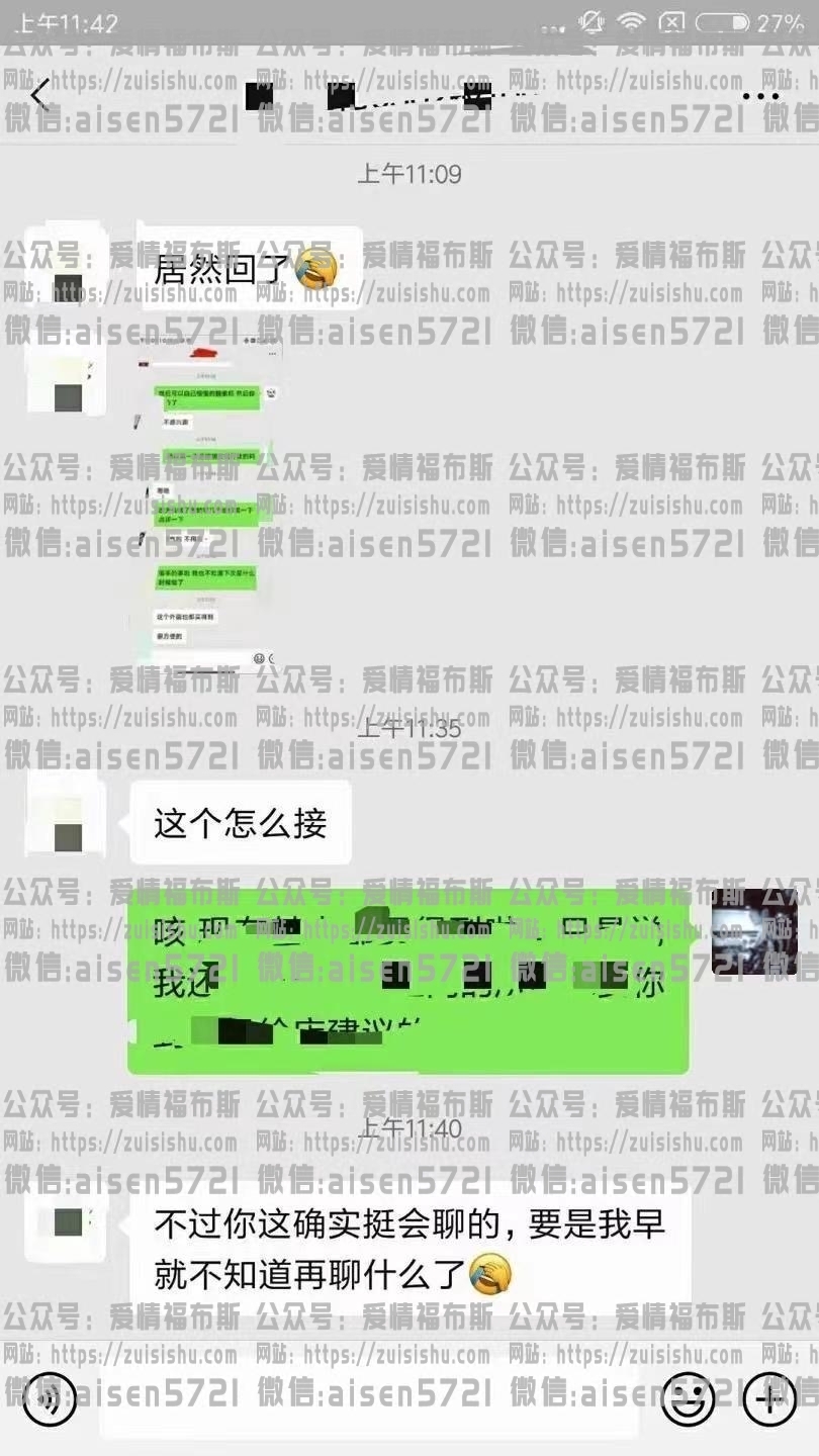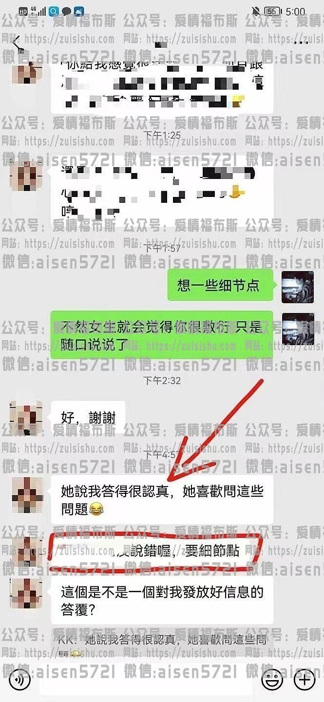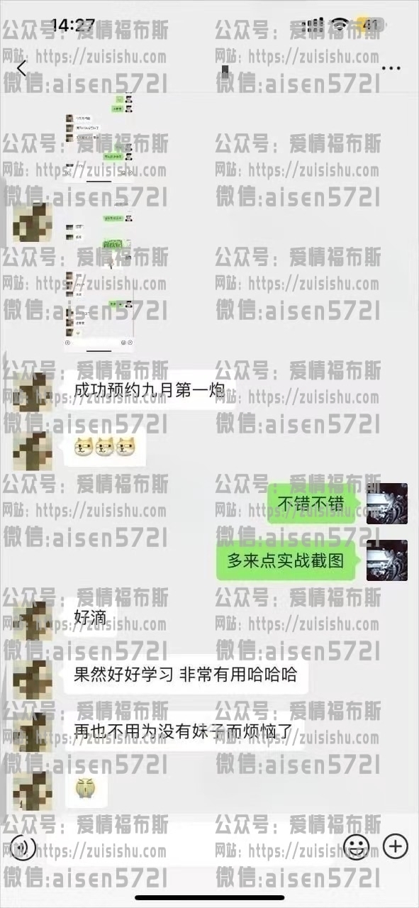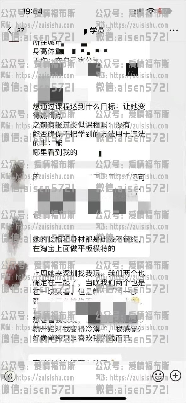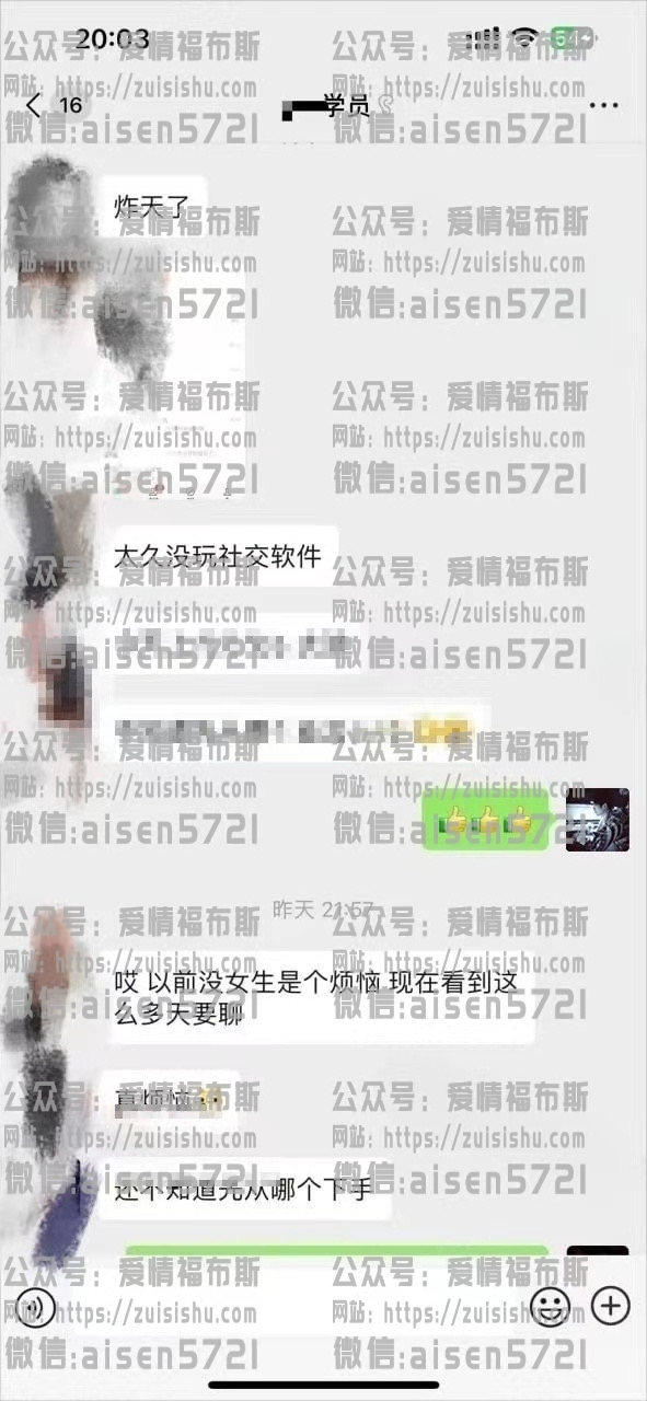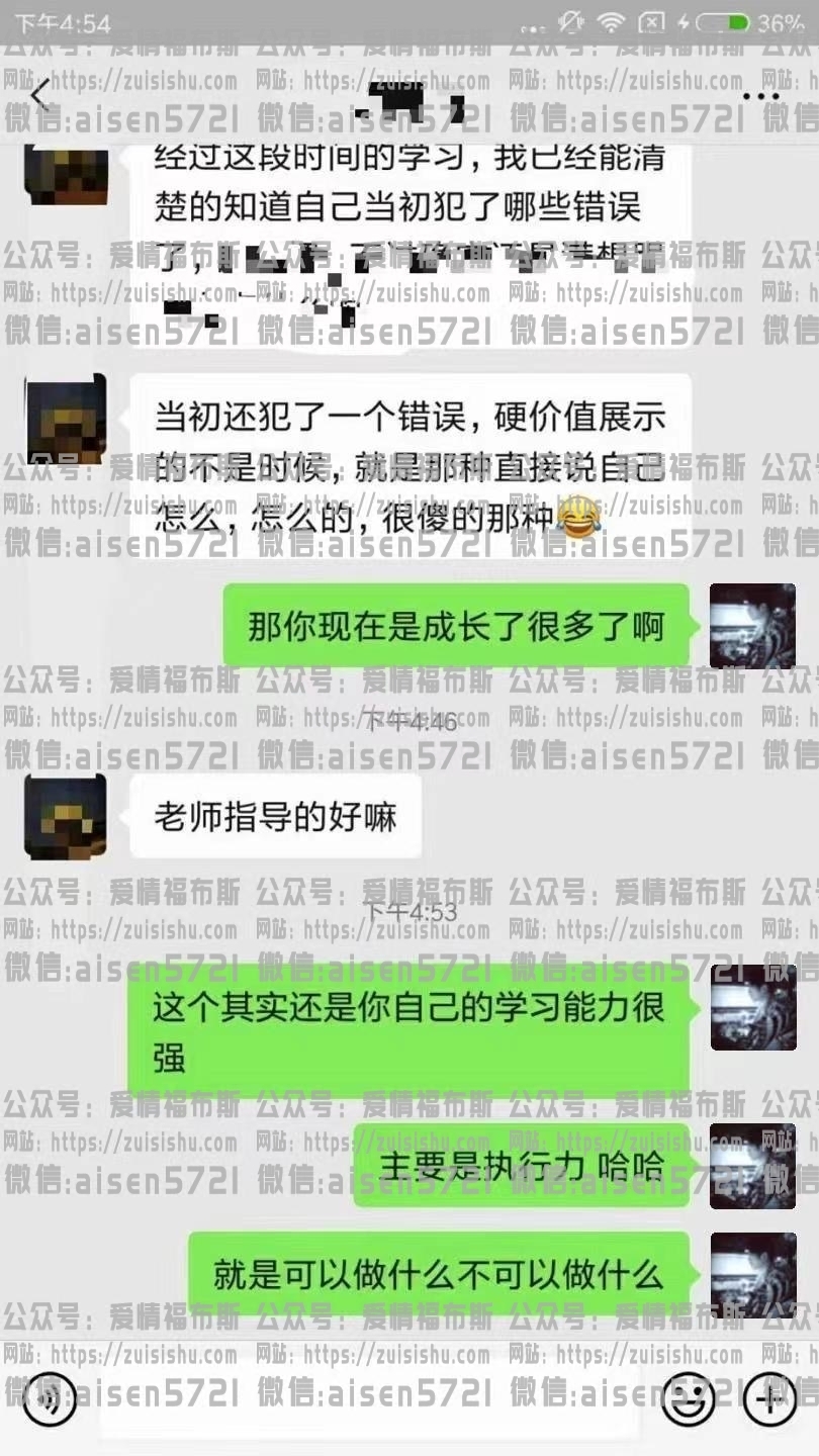 注意:为了避免不可抗力等因素造成的影响,因此完整没有做模糊处理的,及当前页面不适宜进行展示的部分素材,已经放置网盘,查看完整学员反馈列表,请加微信:aisen5721(如该微信不可用可关注公众号“爱情福布斯”回复“error”获取最新,或者直接扫描当前站点右侧边栏二维码!)
