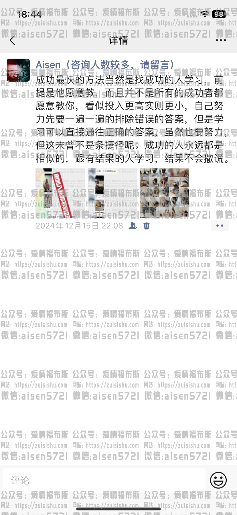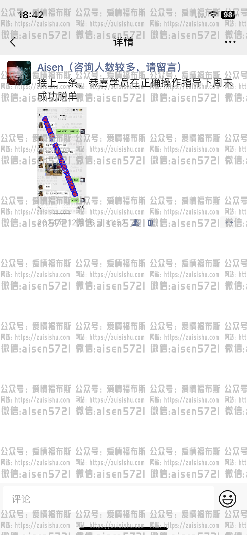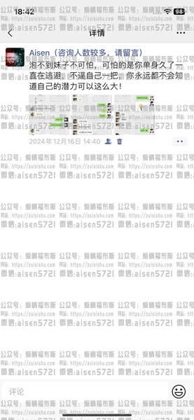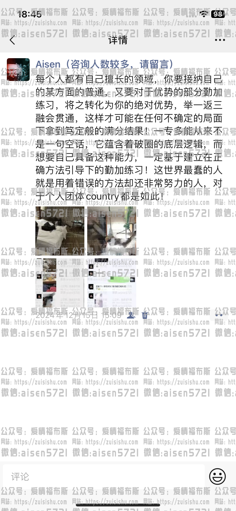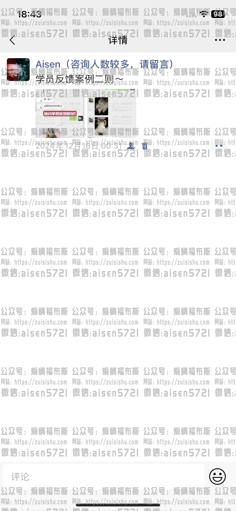 注意:为了避免不可抗力等因素造成的影响,因此完整没有做模糊处理的,及当前页面不适宜进行展示的部分素材,已经放置网盘,查看完整学员反馈列表,请加微信:aisen5721(如该微信不可用可关注公众号“爱情福布斯”回复“error”获取最新,或者直接扫描当前站点右侧边栏二维码!)