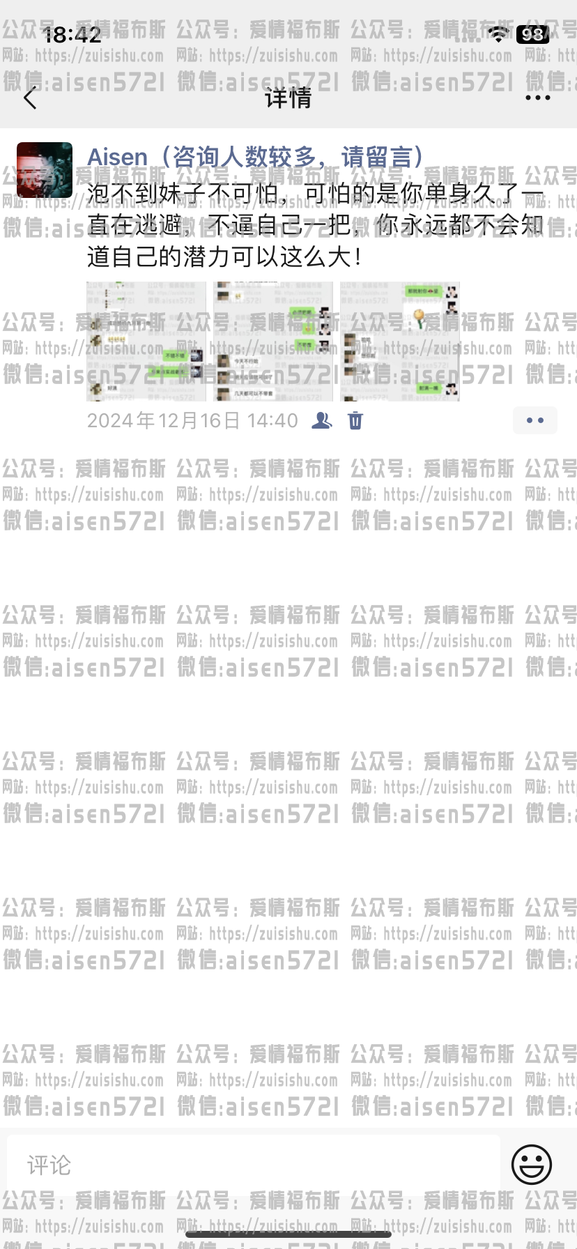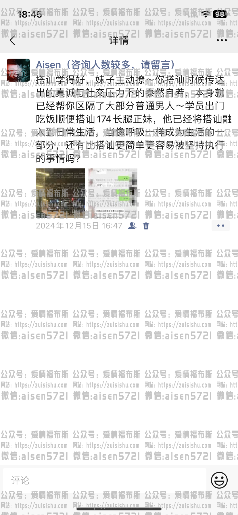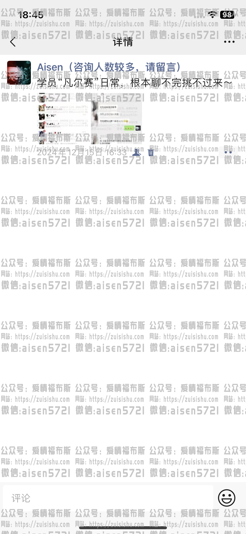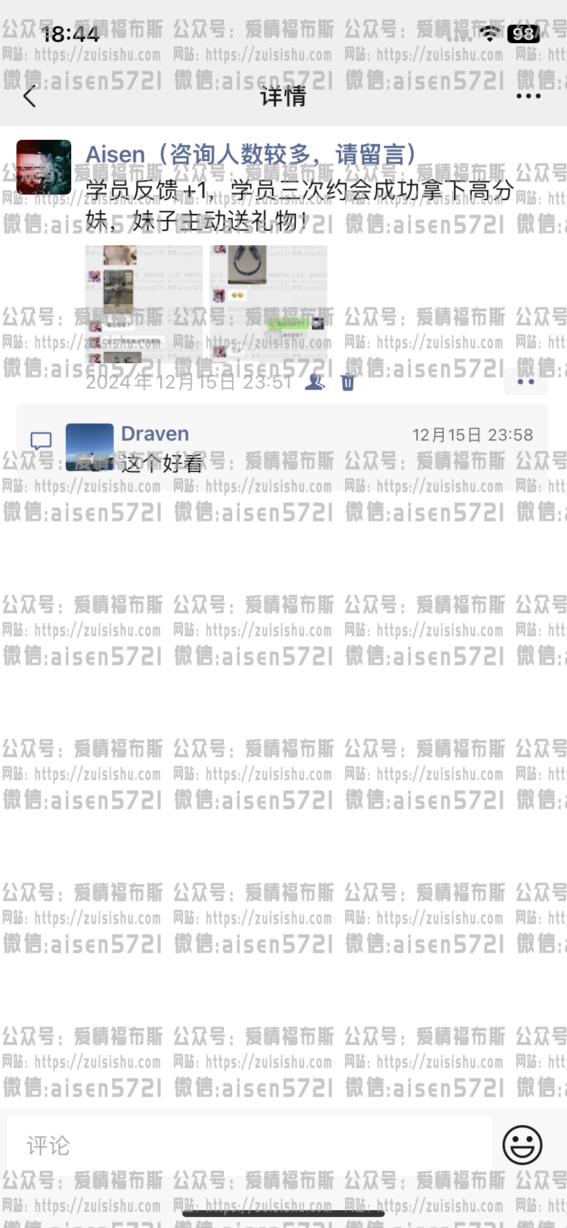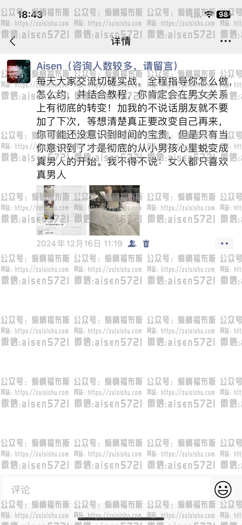 注意:为了避免不可抗力等因素造成的影响,因此完整没有做模糊处理的,及当前页面不适宜进行展示的部分素材,已经放置网盘,查看完整学员反馈列表,请加微信:aisen5721(如该微信不可用可关注公众号“爱情福布斯”回复“error”获取最新,或者直接扫描当前站点右侧边栏二维码!)