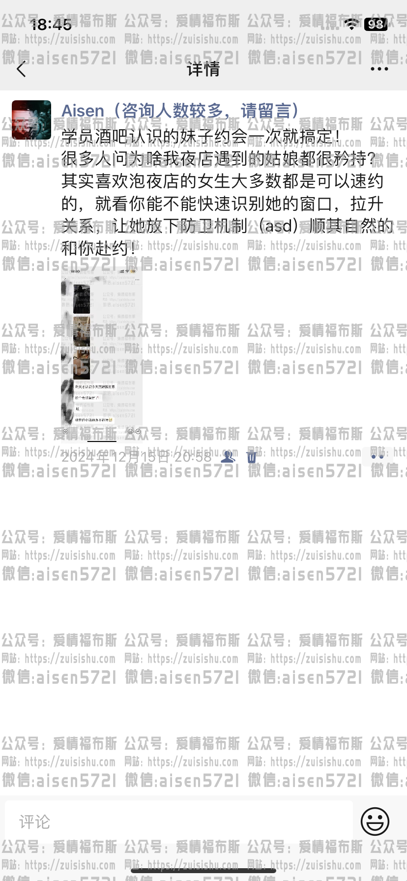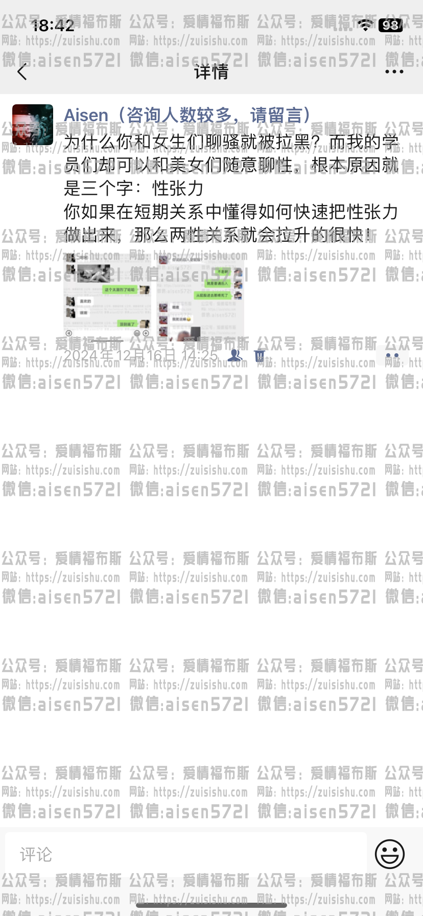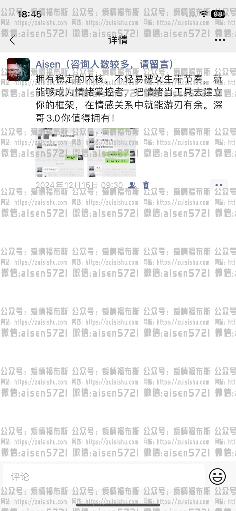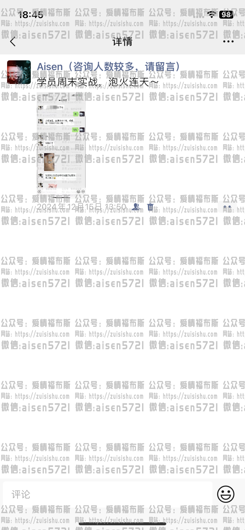 注意:为了避免不可抗力等因素造成的影响,因此完整没有做模糊处理的,及当前页面不适宜进行展示的部分素材,已经放置网盘,查看完整学员反馈列表,请加微信:aisen5721(如该微信不可用可关注公众号“爱情福布斯”回复“error”获取最新,或者直接扫描当前站点右侧边栏二维码!)